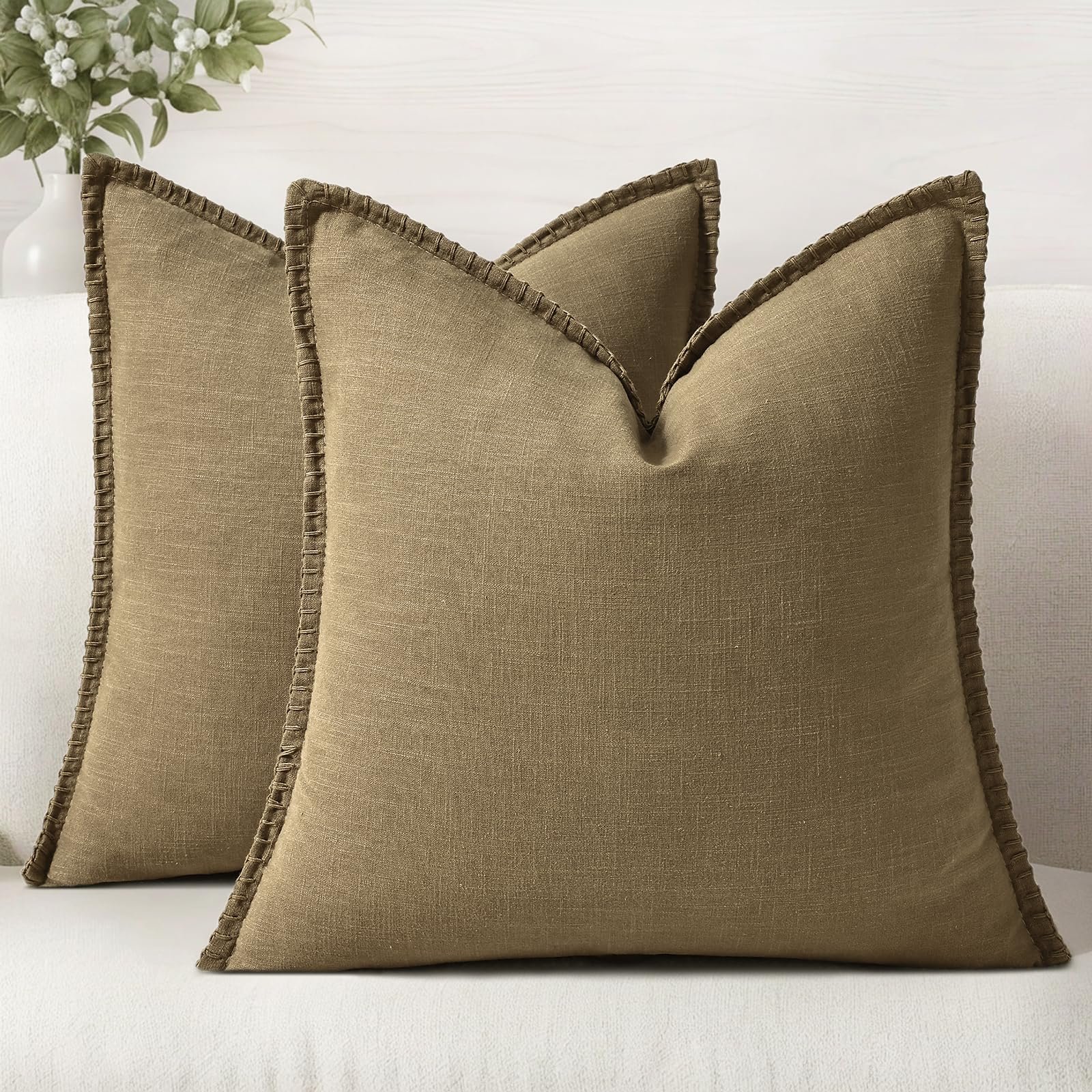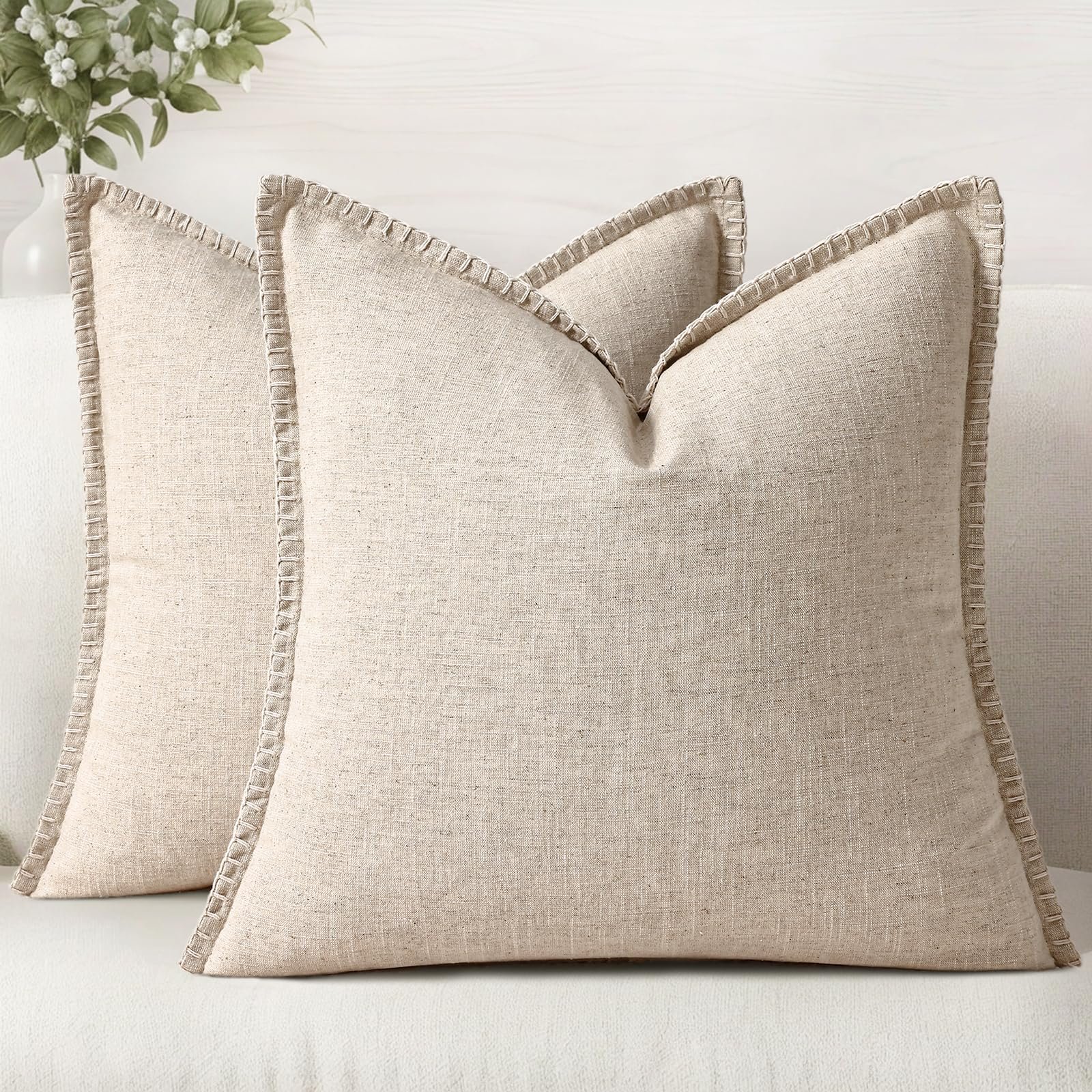 Eclipse Innovation Decorative Linen Farmhouse Throw Pillow Covers 18×18 Set of 2