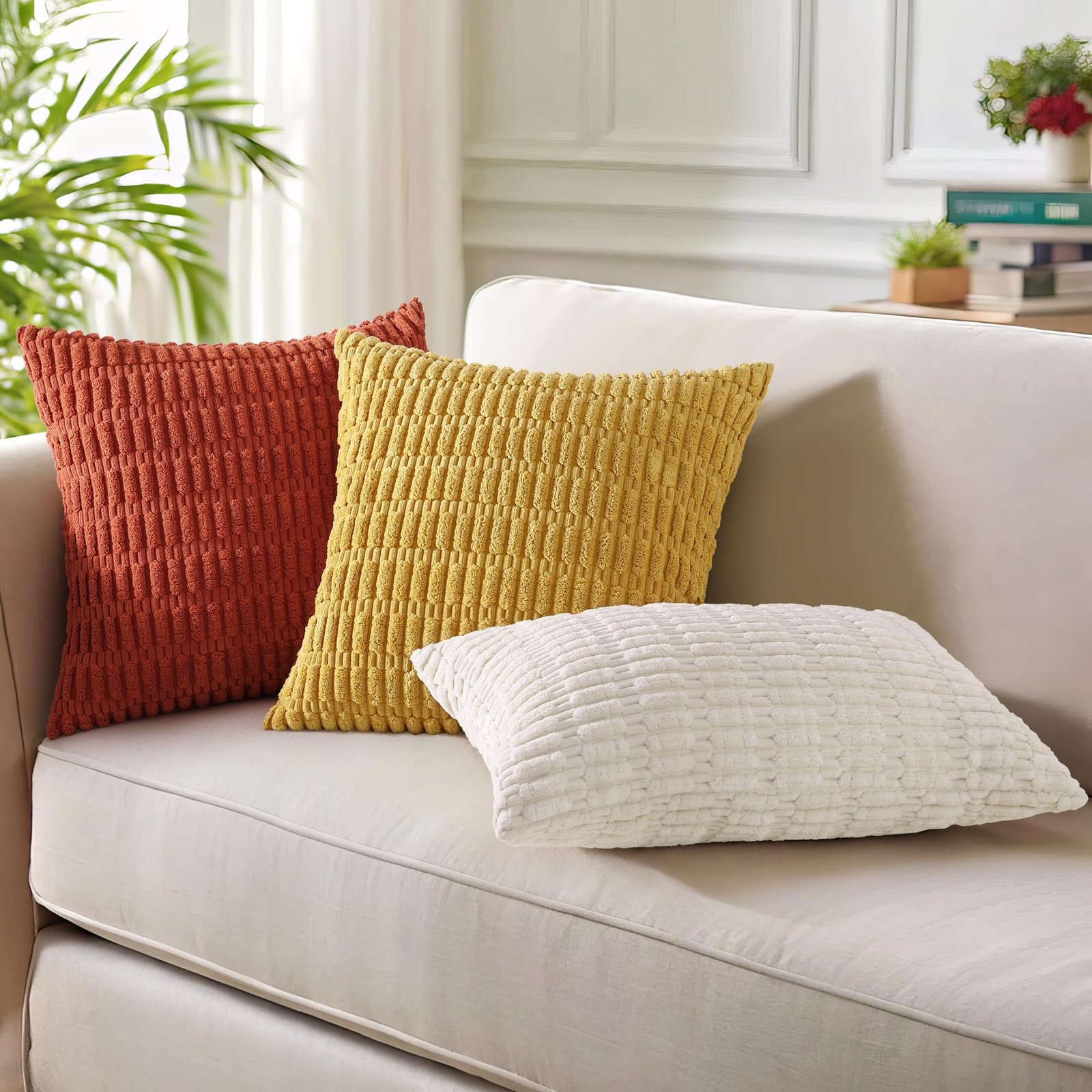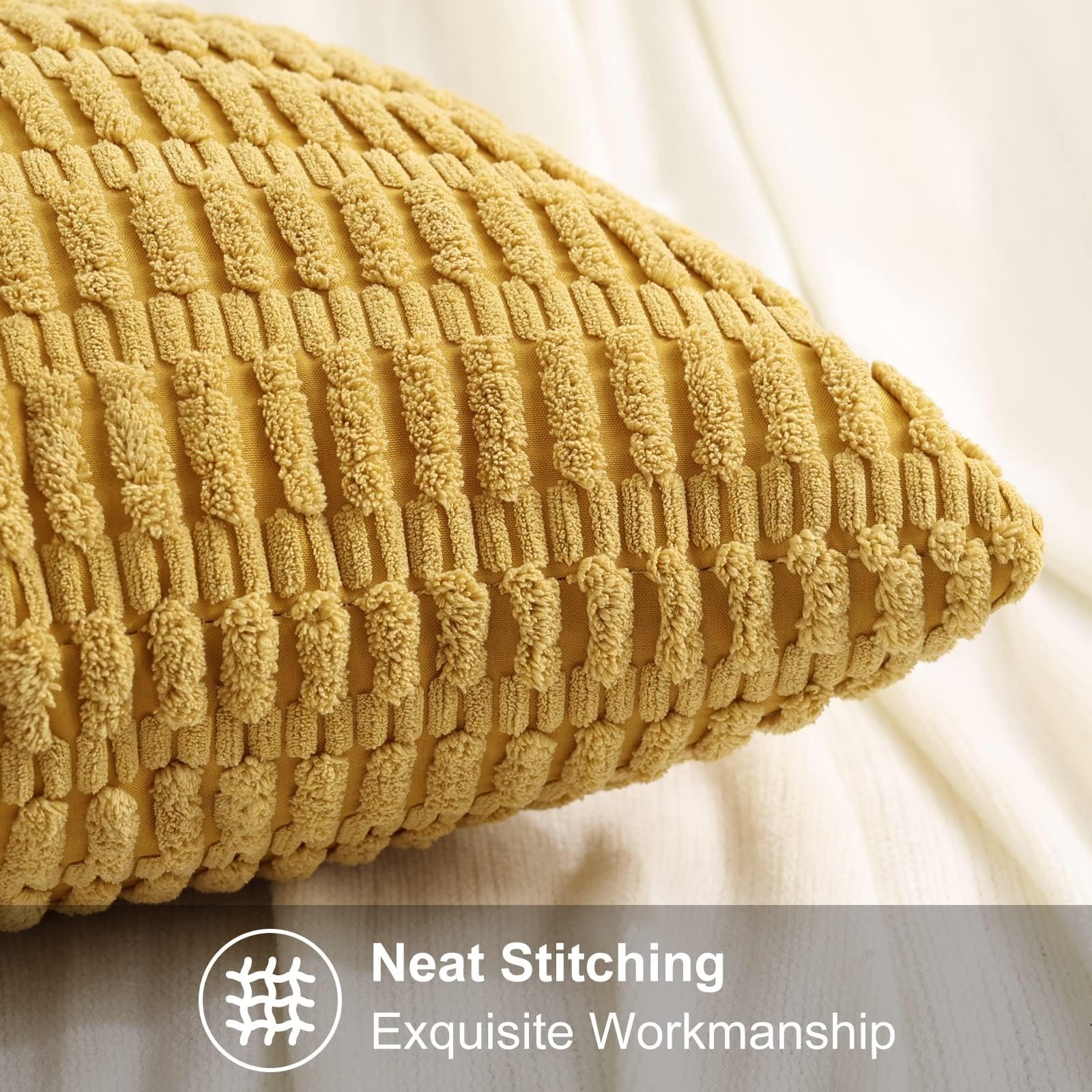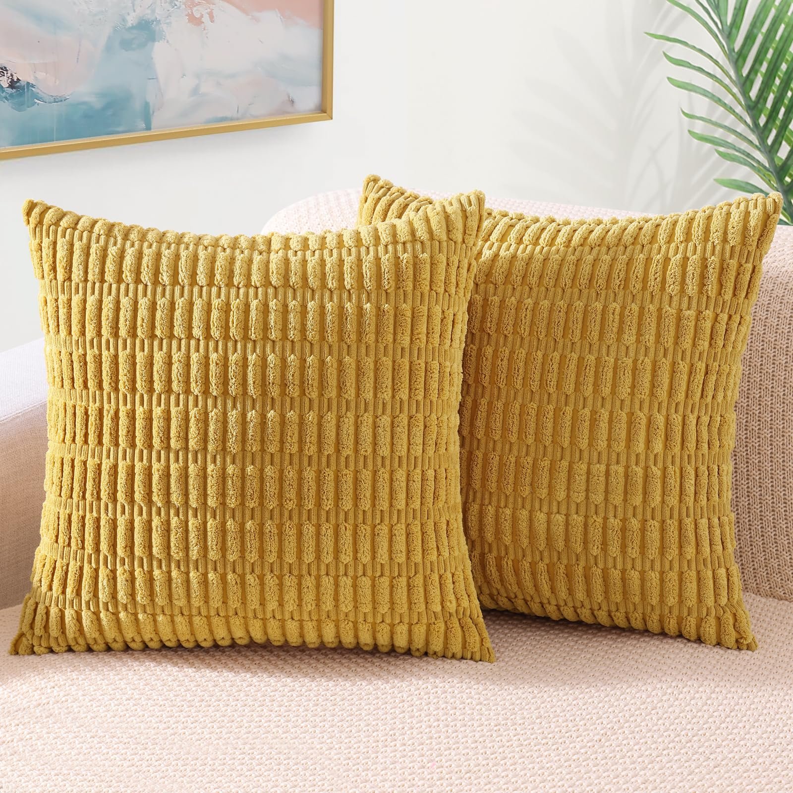 Eclipse Innovation Mustard Yellow Neutral Decorative Fall Throw Pillow Covers 26×26 Inch Set of 2