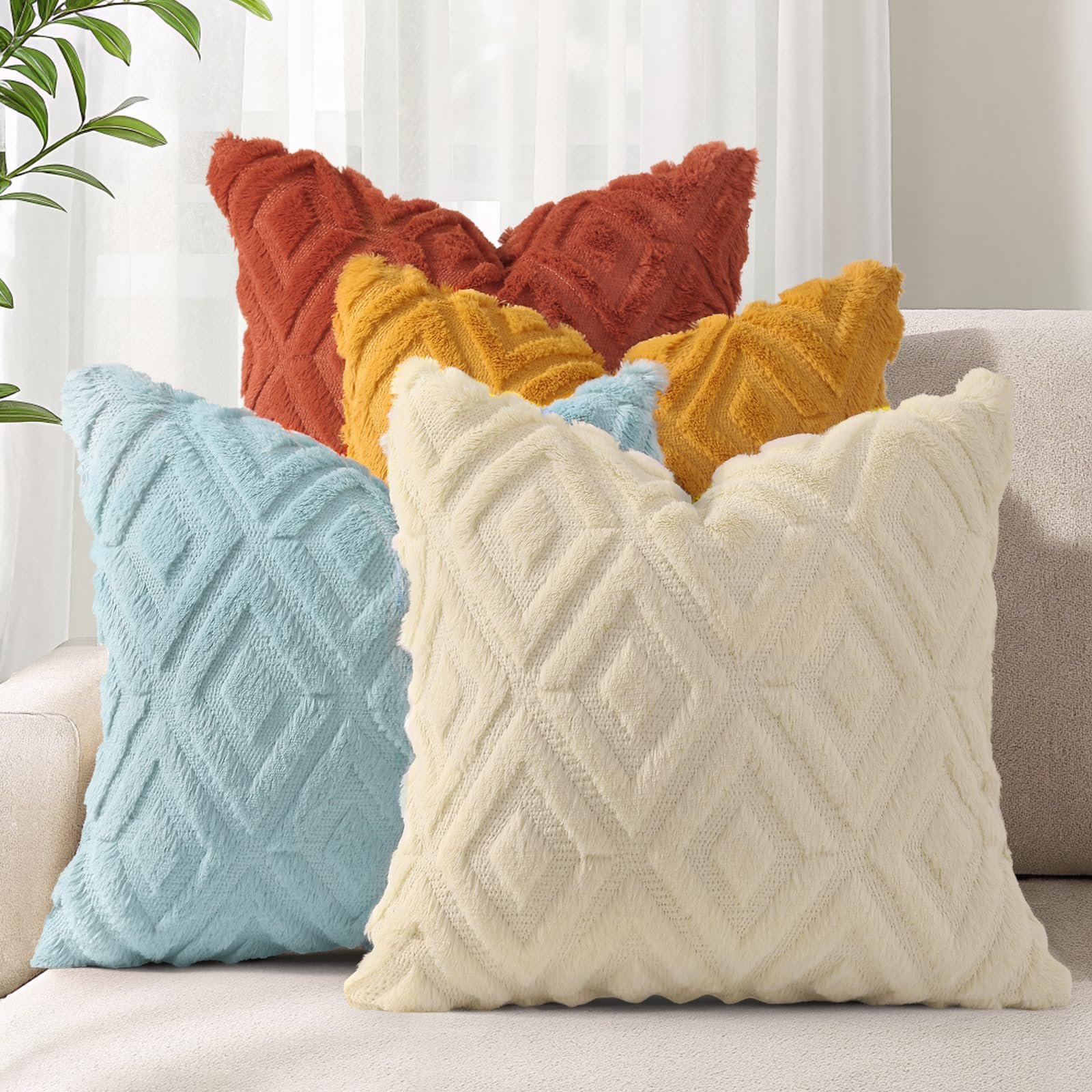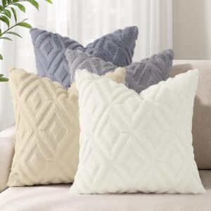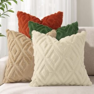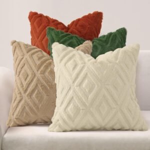 Add a touch of warmth and style to your home with Eclipse Innovation decorative pillow covers 18×18. Designed with a modern aesthetic and made from high-quality materials, these throw pillow covers 18×18 are an easy way to refresh your living space. The front features ultra-soft faux fur with a subtle 3D diamond texture, while the smooth velvet back adds extra comfort and durability. Each 18 x 18 pillow cover includes a color-matching hidden zipper for a seamless, tailored look and easy insert removal. This set includes four neutral pillow covers in matching cream tones — a timeless, clean look ideal for blending into light and airy interiors or creating a cohesive neutral theme. Whether you're refreshing your living room, decorating a guest room, or adding texture to a reading nook, these pillow covers make a versatile and stylish accent. Care Instructions: Machine washable on a gentle cycle with cold water. Tumble dry on low heat. Do not bleach or iron. To maintain the faux fur texture, shake gently after drying.